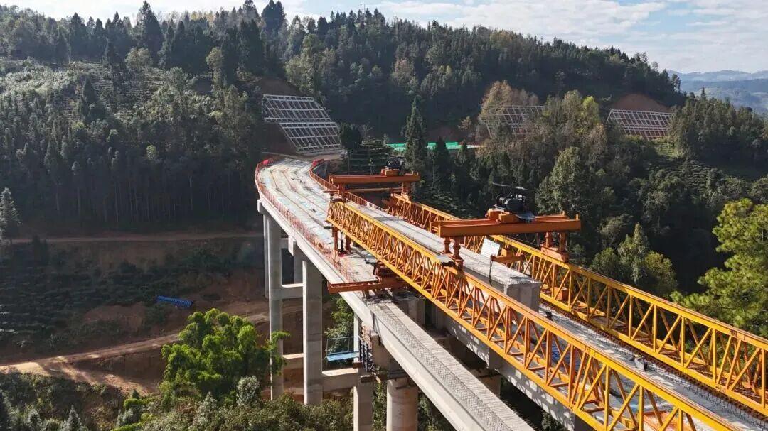 在保山,G219黄勐项目再传捷报,11月17日D标段率先完成全线最复杂桥梁群贯通,220片预制T梁精准架设到位,10座总长1137.3米的桥梁全幅贯通,为路面铺筑打通“生命线”;G219泸腾项目腾越隧道、龙川江特大桥等控制性工程稳步推进。
