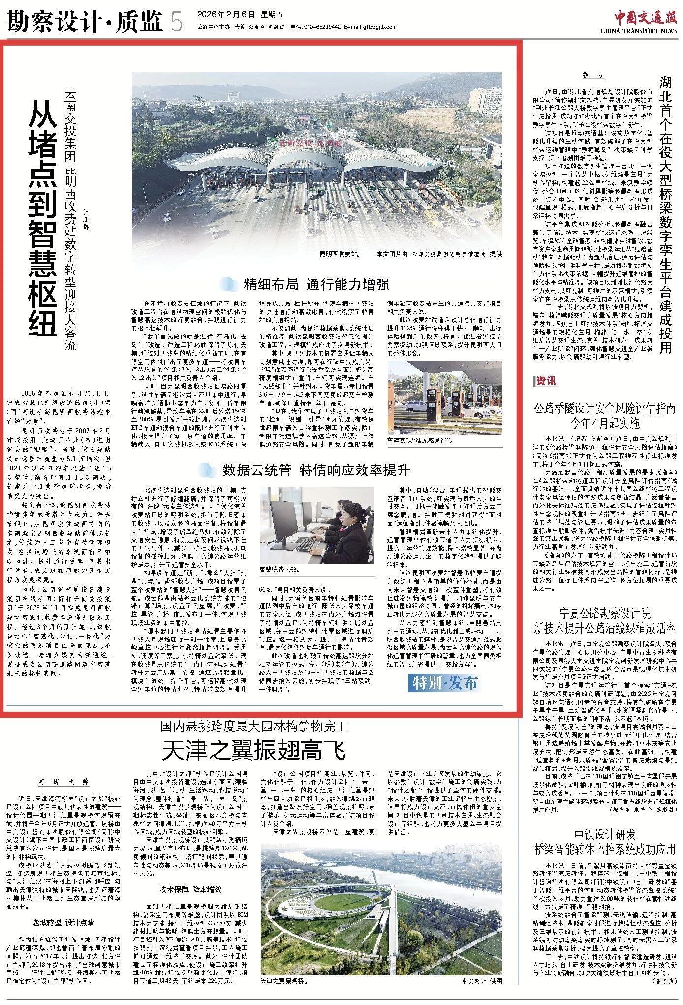 【中国交通报】从堵点到智慧枢纽——昆明西收费站数字转型迎接大客流时间:2026-02-09 2月6日,《中国交通报》刊发文章《从堵点到智慧枢纽——云南交投集团昆明西收费站数字转型迎接大客流》,全文如下: